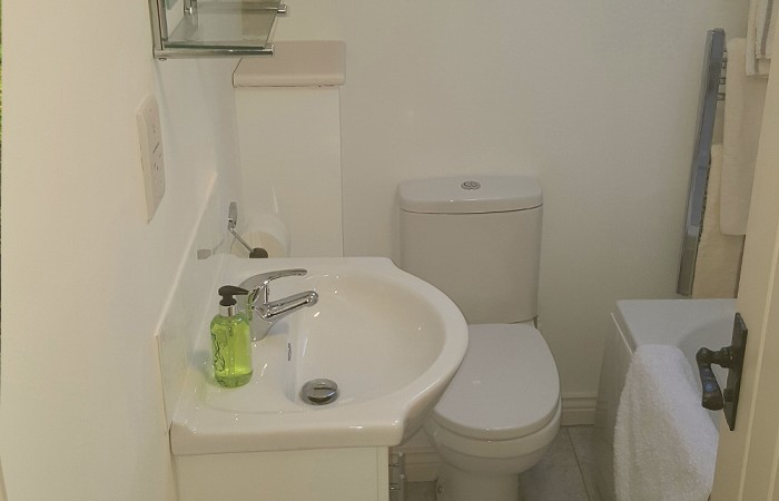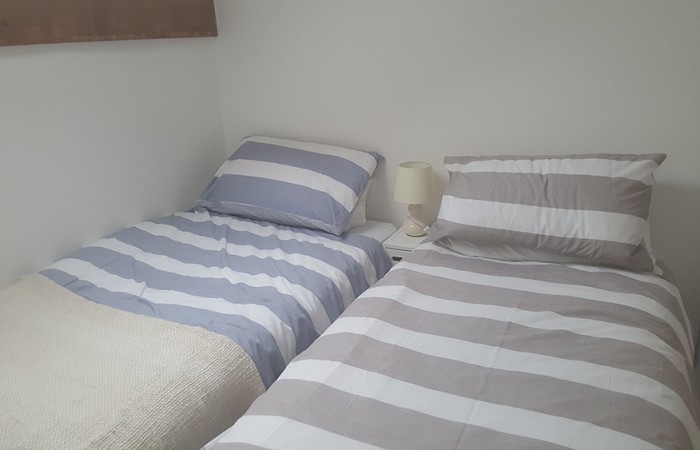 Each cottage has two bedrooms, one double and one twin, and if required we can supply an additional bed in the downstairs living area. Storage and wardrobe space is provided and a hair dryer can be found in the master bedroom. A family bathroom with heated towel rail and bath / shower is located upstairs with an additional toilet on the ground floor.